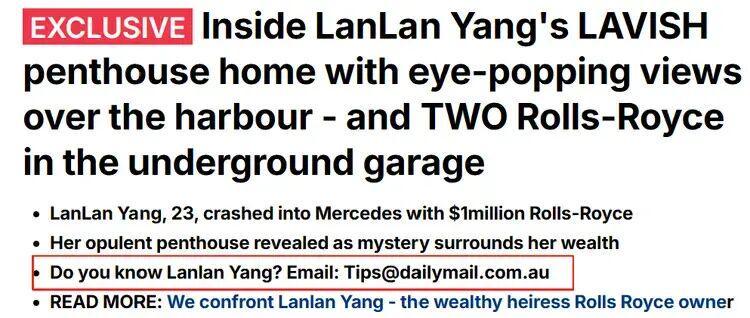 真实情况是:一名23岁华裔女子杨兰兰(音译),在悉尼驾驶劳斯莱斯逆行醉驾,撞上电台名嘴司机的车。她被控酒驾、拒做酒精测试、造成人身伤害,还新增一项“未向警方提供个人信息”。