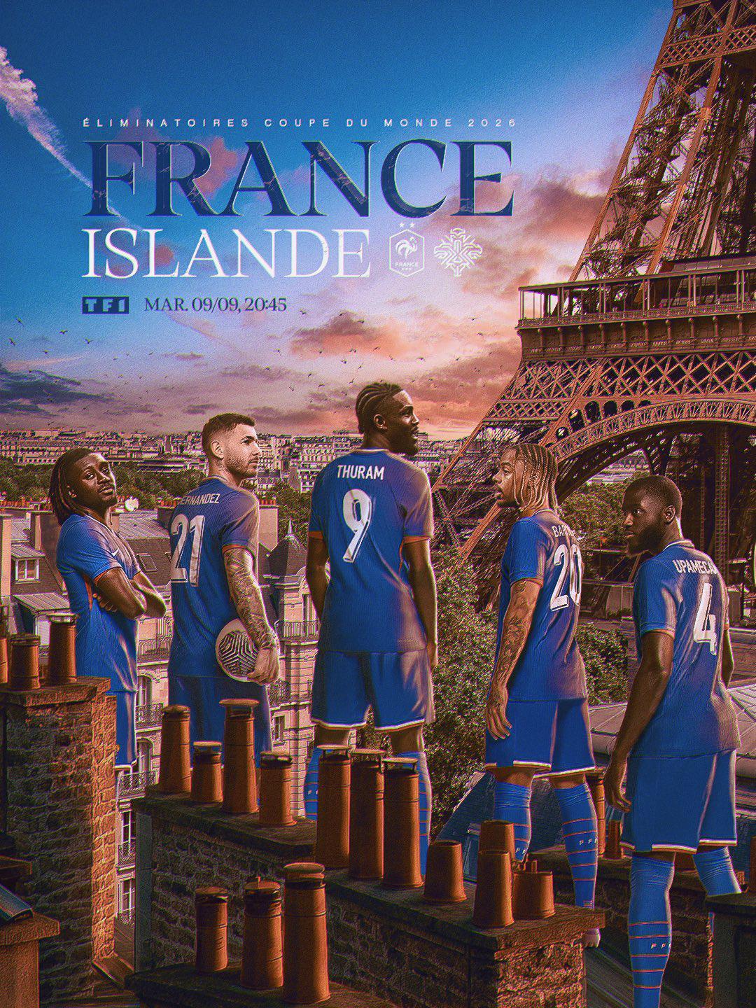 预热海报中,图拉姆C位出镜,其他四人包括巴尔科拉、奥利塞、卢卡斯·埃尔南德斯和于帕梅卡诺。法国队并配文:“球迷全部站在身后支持你们!”