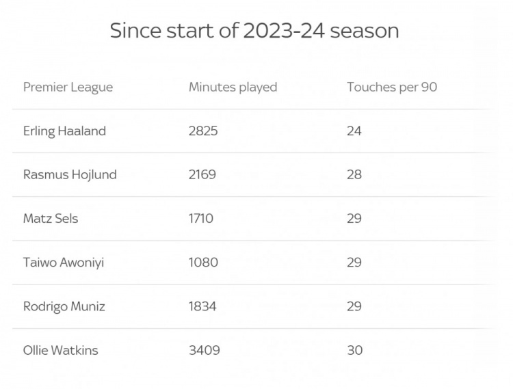小雷德克纳普坚信哈兰德已经“让前锋重新流行起来”。比如,将他与维拉的沃特金斯进行比较——23/24赛季另一位表现出众的射手——这种说法就显得尤为正确。