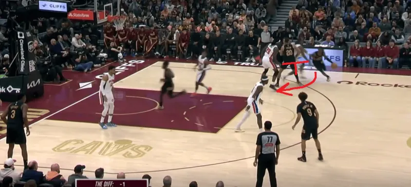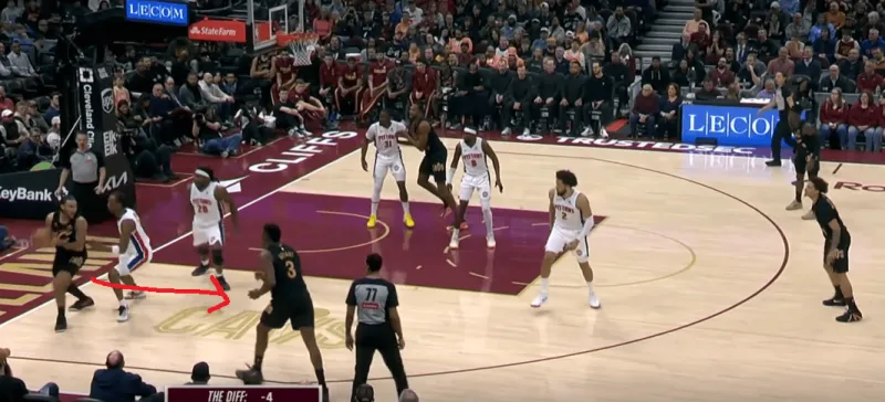 这一次也是同样的道理,在阿伦引导右侧的掩护下,泰森变向走左侧过掉了CC,从而吸引了活塞的防守收缩,