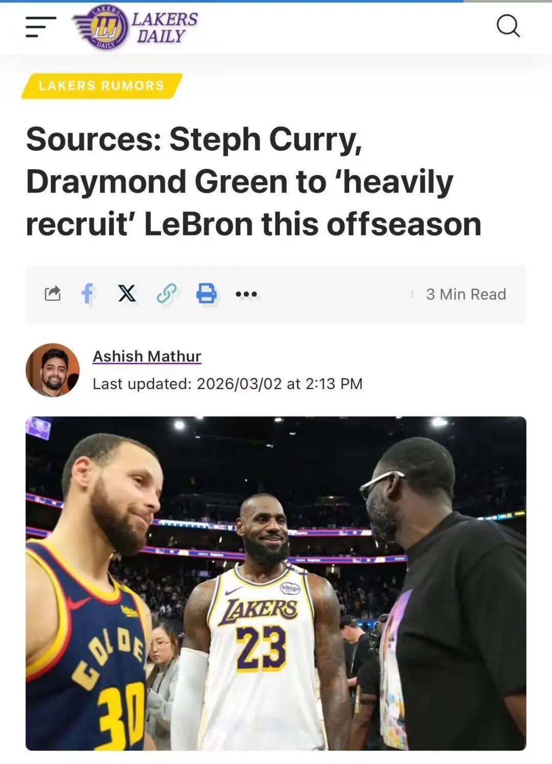 开云中国-考虑赛季报销!库里将专注招募詹姆斯!?